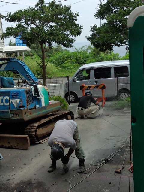 こんな、お天気続きですが大同工業さんの職人さんたちが頑張ってくれています。今日は大きい倉庫(アルミ缶の選別場所)が建つ基礎が始まりました。
