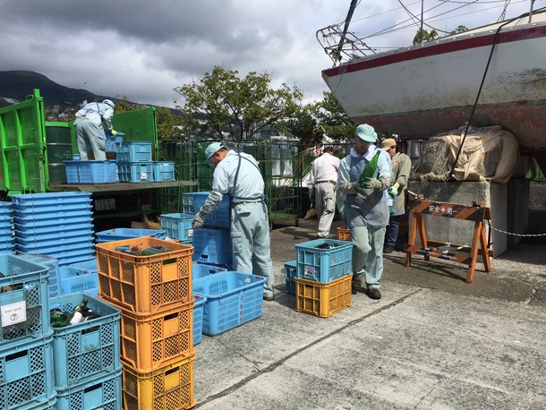 さて、作業として、熱海港に初島から船便で運ばれたビンの収集に毎週行くのですが、その様子をアップします。