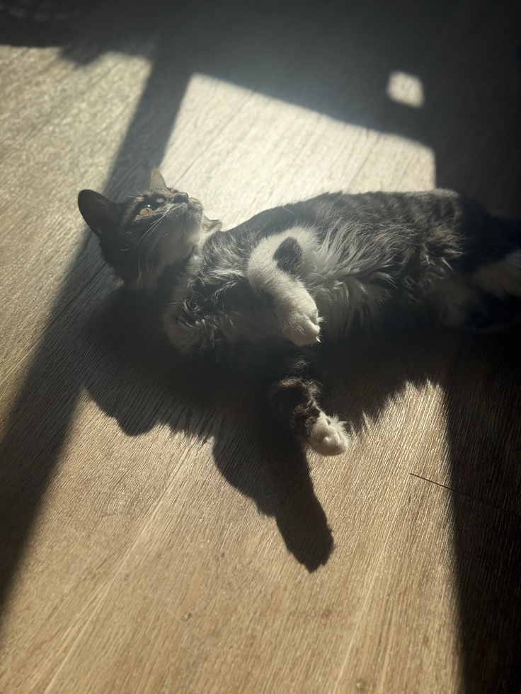ジジと一緒に日向ぼっこ中のきなこです💕