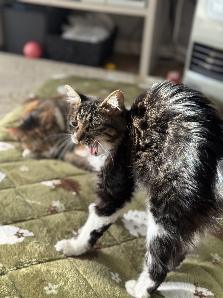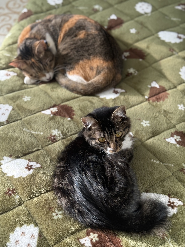 帰ると、暖房が一番よく当たる場所で2匹仲良く…💕