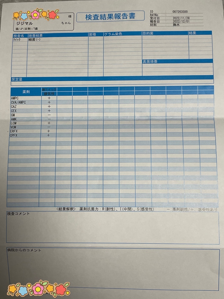 (使用中の抗生剤で問題ないという結果)