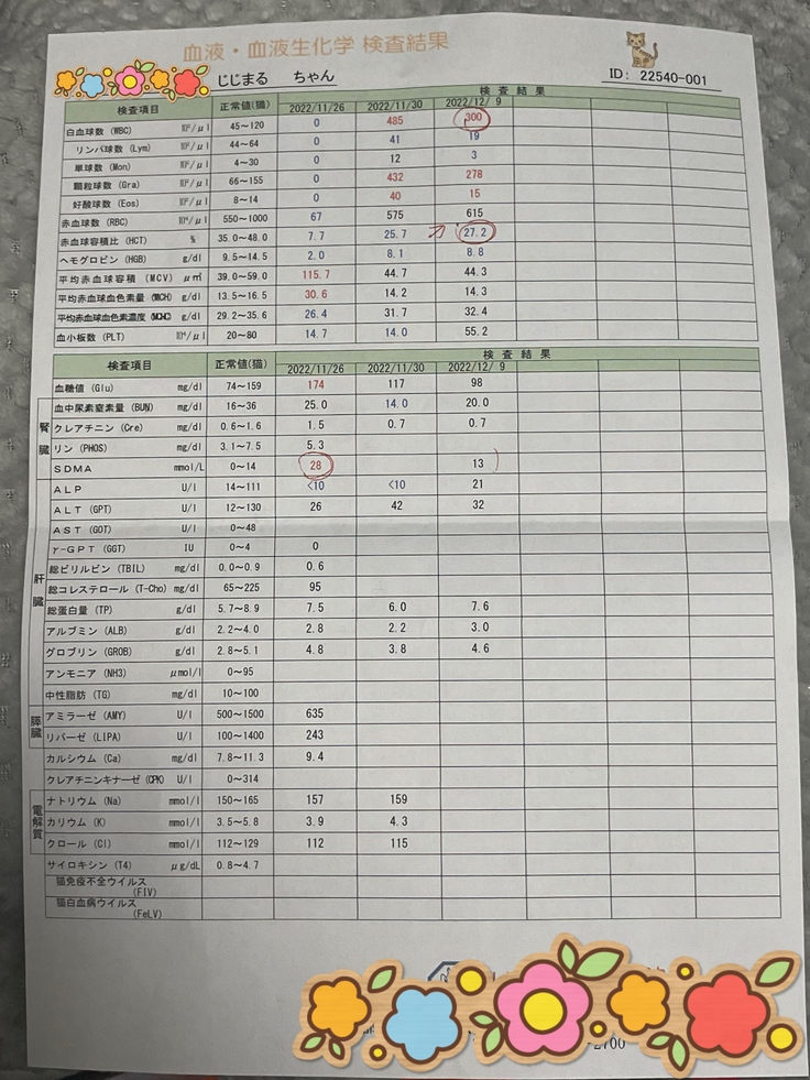 改めて調べましたが、白血病、猫エイズ共に陰性です。ホッとしました。