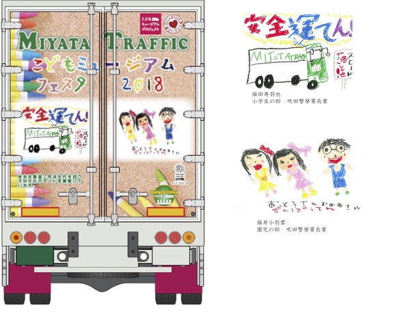 「こどもミュージアムフェスタ2018」で絵を描き、見事にコンテストで入賞した子ども達にもトラックにラッピングされることを報告し、ドライバーさんへのメッセージも頂きましたのでぜひご覧下さい。皆様からのご支援が安全意識の向上により一層繋がっていくと思います。本当にありがとうございました!