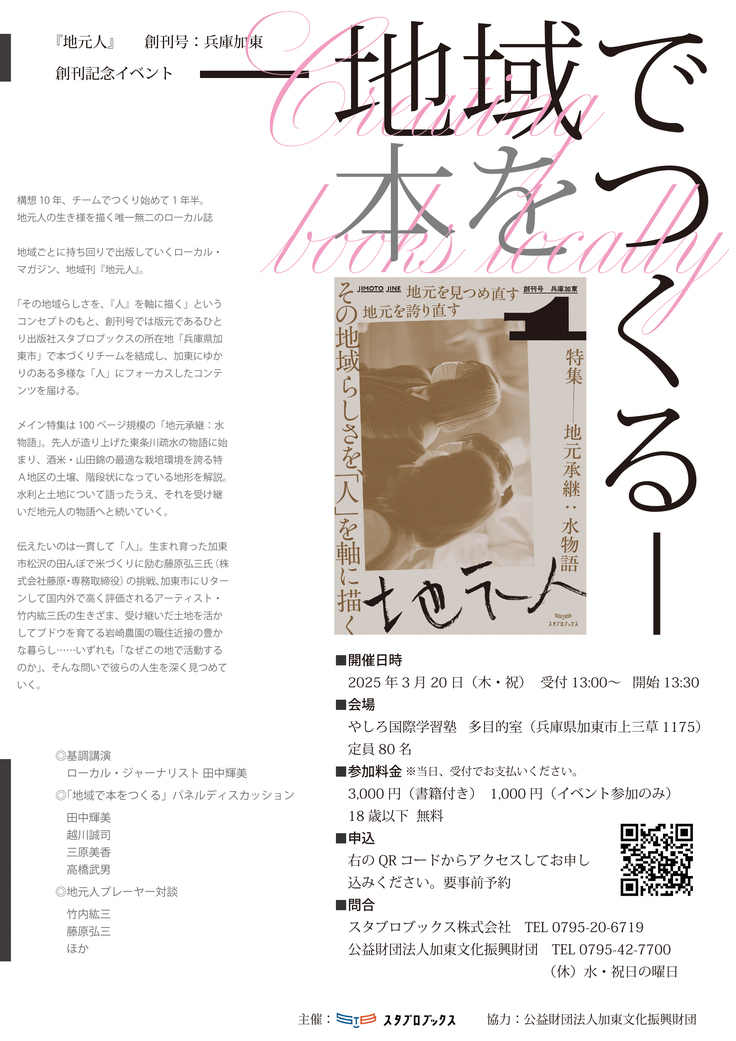 今週の祝日の木曜日、3月20日に加東市のやしろ国際学習塾で『地元人』の創刊記念イベントを開催します。