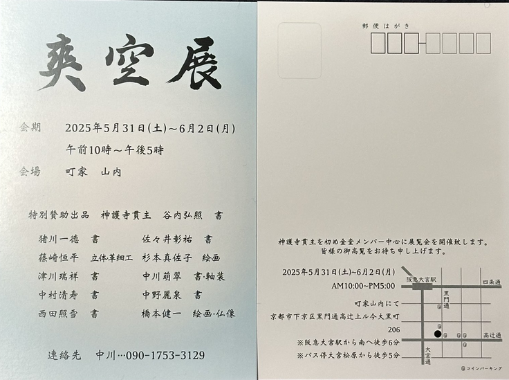 この度、神護寺の従業員スタッフと共に作品を持ち寄り京都市内の町家にて爽空展(そうくうてん)を開催することとなりましたので、こちらでご紹介させていただきます。