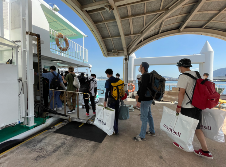 しかし、サバイバルキャンプは藍島での開催でフェリー移動を伴います。