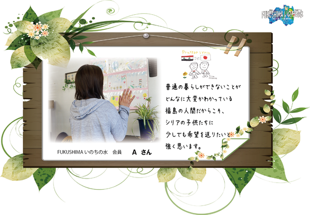普通の暮らしが出来ないことが、どんなに大変なことか分かっている福島の人間だからこそ、シリアの子ども達に、何か少しでも希望を送りたいと強く思います。