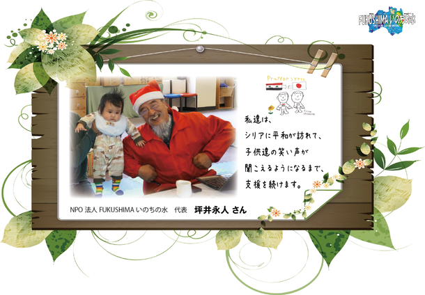 今日と明日最終日のメッセージは、FUKUSHIMAいのちの水代表の坪井永人(サンタさん)さんです。