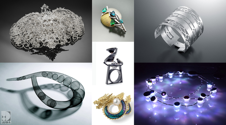紙からダイヤモンドまで、さまざまな素材を用いてジュエリーのジャンルを広げている会員の活動は、多岐に広がり、国際的に活躍する会員も輩出し、我が国のジュエリーデザインの高い水準を示しています。
