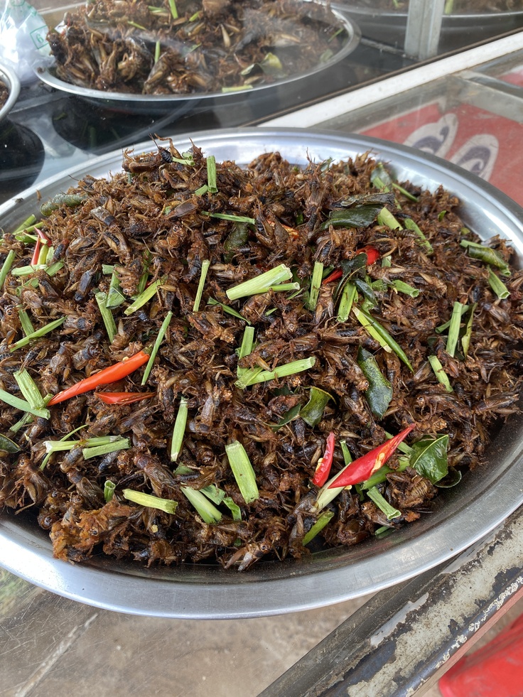 また、移動途中で遭遇した屋台の店では、マンゴーなどのドライフルーツ、私にはとても受け入れられない昆虫食などもボールに山盛りで売っていました。