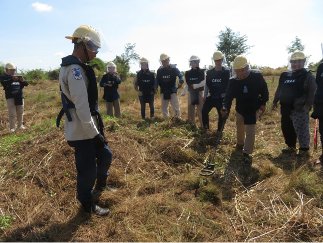 その後、処理活動の現場に到着、指揮所で活動状況について説明を受けた後、実際に地雷・不発弾を処理する現場を見学して頂きました。