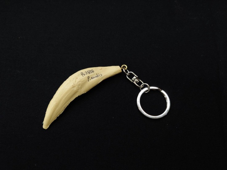 こちらはモンキーセンターで飼育されていたアヌビスヒヒの犬歯のレプリカ【歯プリカ】をキーホルダーにしたものになります。
