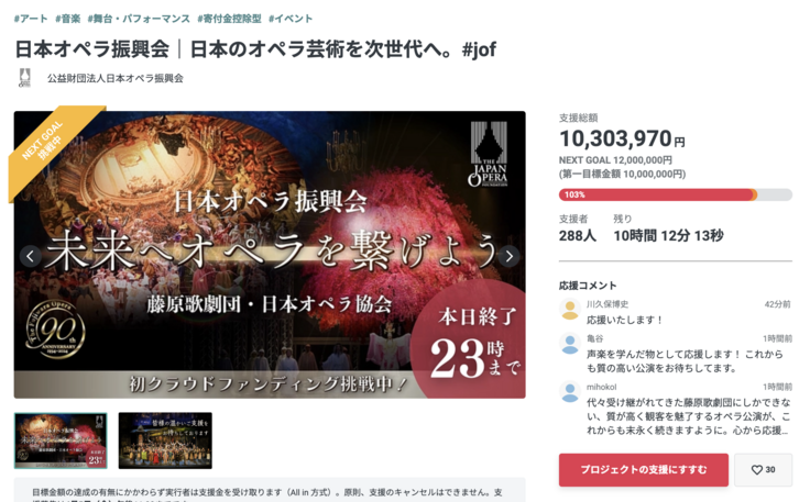これまでもお伝えしてまいりました通り、このプロジェクトはオペラという芸術の価値を未来につなぐため、財団の運営基盤を安定させることを目的として挑戦しております。目標額は達成いたしましたが、状況を改善するためには、実際にはまだまだご支援が必要な状況にあります。