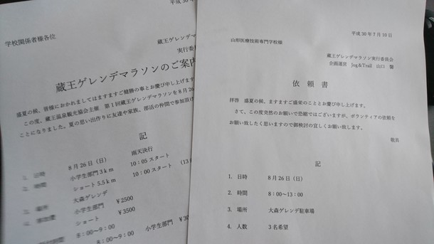 小学生・中学生などにもっと参加してもらいたいので、山形市スポーツ振興課に電話をして聞いてみました。山形市・山形教育委員会の後援は頂いていますが、後援といっても何かお手伝いするわけでなく・・・と言われましたがそこは引き下がりません(笑)