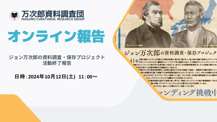 リターン内容「オンライン報告会へご招待」対象の皆様に向けて、2024年10月12日(土)午前11時より、「ジョン万次郎の資料調査・保存プロジェクト」活動報告といたしまして、ZOOMオンライン報告会を開催いたしました。