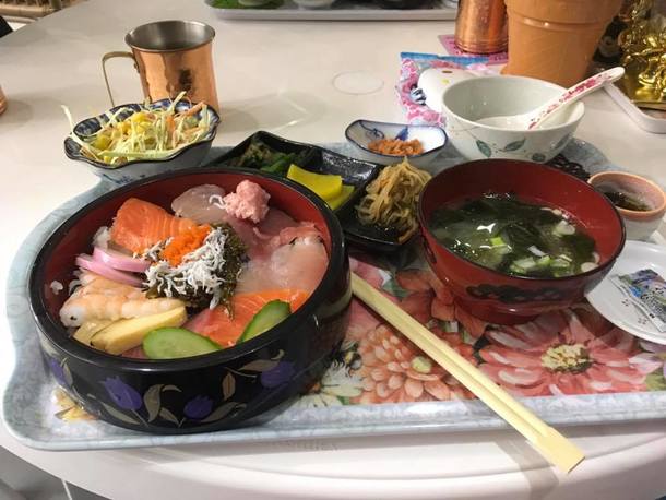 レンタカーを借りて一路釜石に向かいました。釜石にていつも私が行く「なにわ屋」さんにて海鮮丼の昼食(980円)を食べました。