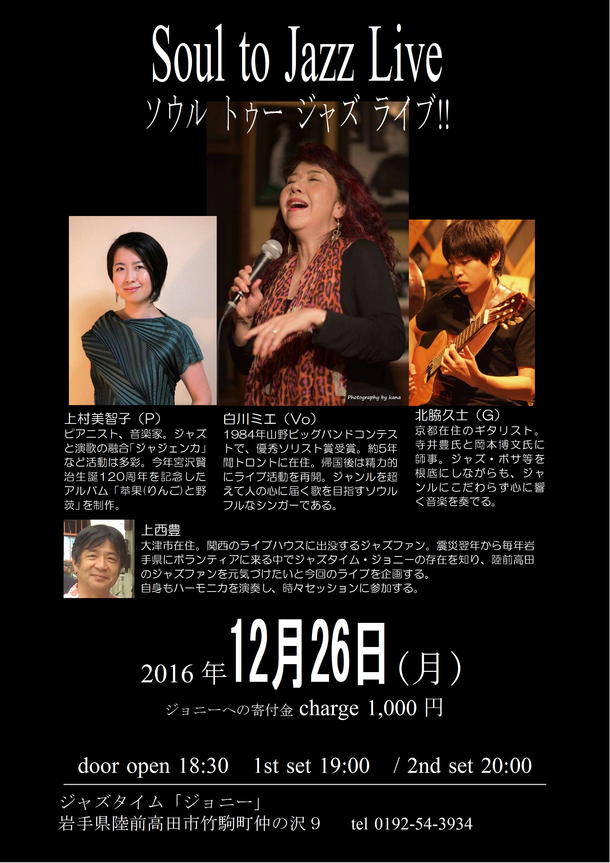 ヴォーカル:白川ミエ ピアノ:上村美智子 ギター:北脇久士