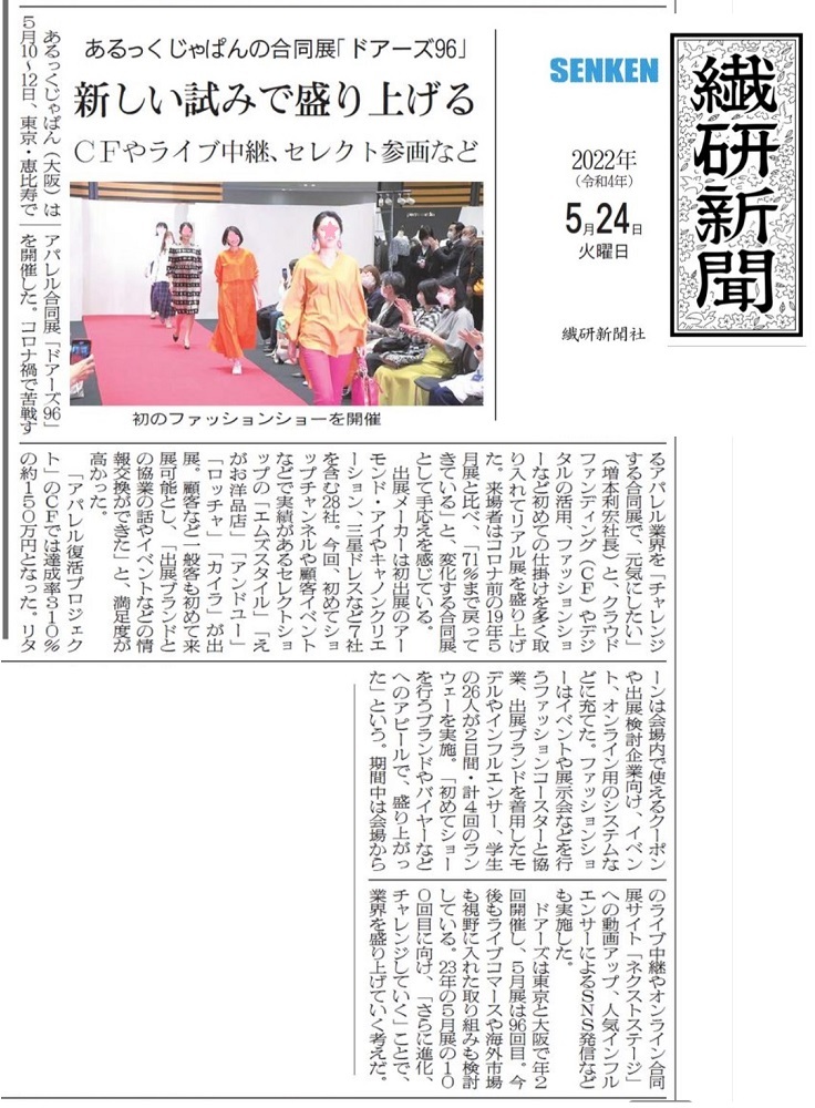 繊研新聞2022年5月24日付 https://senken.co.jp/