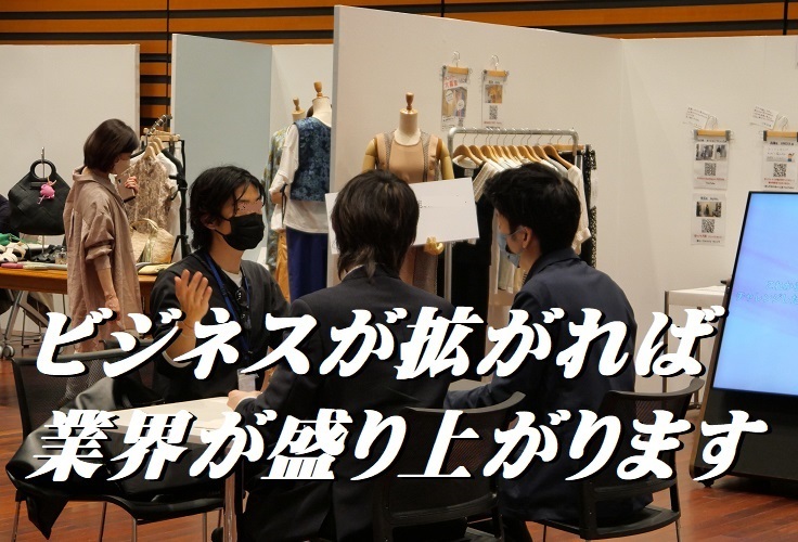 元気な出展者がいる合同展には人が集まります。人が集まればビジネスが拡がり未来を語れます。そんな夢が溢れる会場にしたいのです!中小アパレルが盛り上がればファッション業界が盛り上がり、必ず日本が盛り上がります。その姿を世界に発信したいのです。