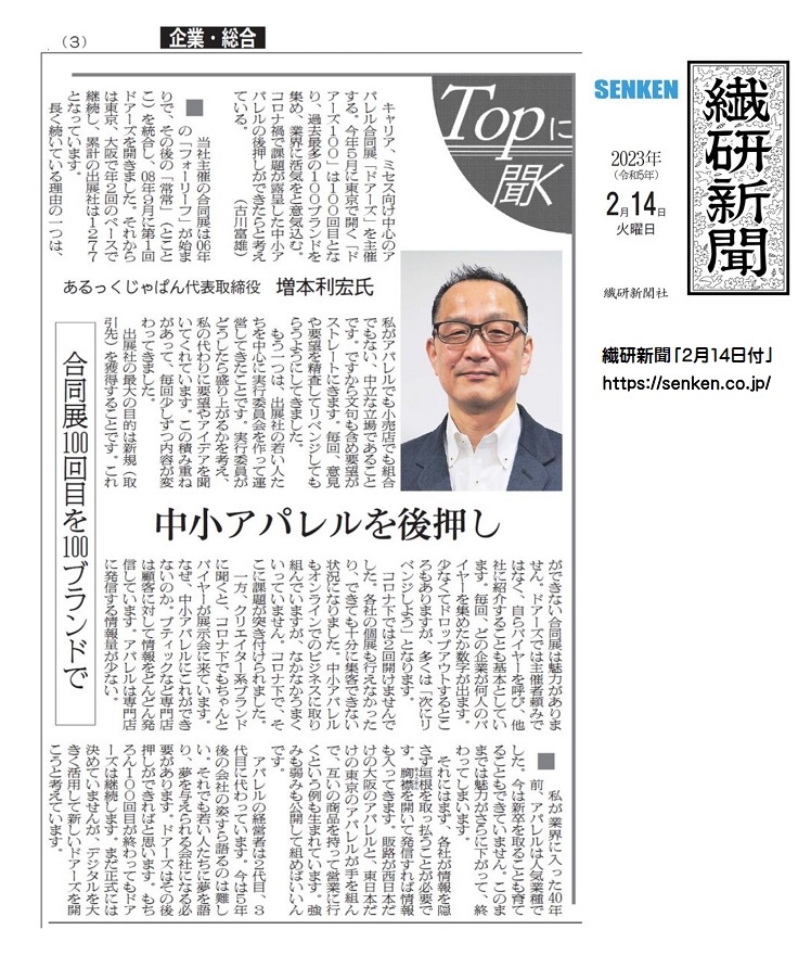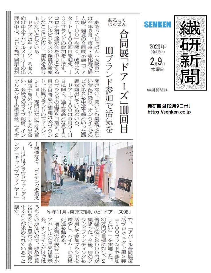 業界紙「繊研新聞」さんにも、合同展Doorsを注目して頂いています。