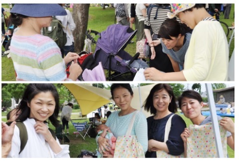 交流サロンの場に参加したお母さんたちの心のケアになる癒しキットを企業の協賛(ロクシタンのハンドクリーム他、THREEのフェイシャルパック、ドイツマリエン薬局のハーブティ)で用意しました。協賛をいただいた各社に改めて心より感謝いたします。