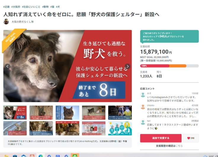 野犬たちの未来を賭けた クラウドファンティングを開催してくださっています