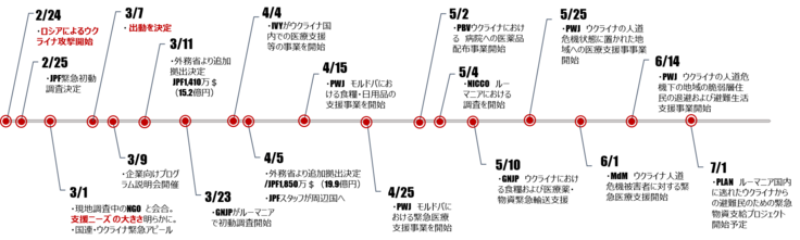 2022年6月22日現在:現在10団体がウクライナ及び周辺国で支援を実施中