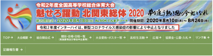 ・2020年8月に予定されていた、全国高等学校体育連盟主催のインターハイ(対象:高校生 / 個人戦)