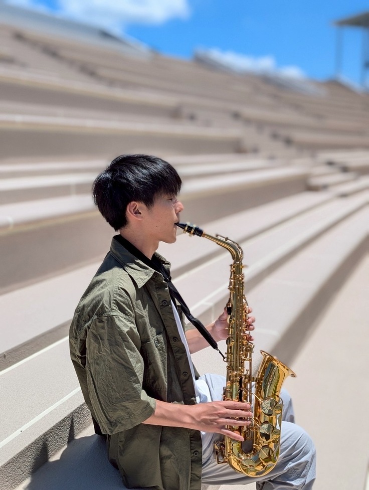 アルトサックス担当させていただいてます。アルトサックスは、力強い音色ですが、特に温かい音色を奏でることができます。入部して3ヶ月程とまだ拙い音色ですが、仲間とともに楽曲を奏でることで自身の技術を磨くことに繋がり、多くの方々の心に響かせることのできるような音色作りを行っていきたいと考えています。
