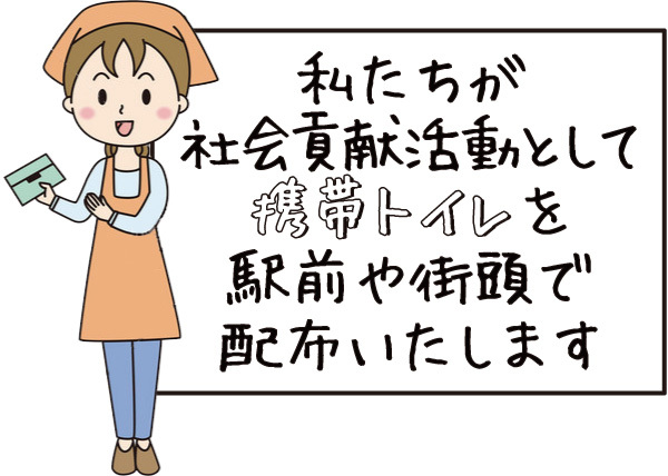 - お渡しする携帯トイレの添付チラシに、社名・商品名・メッセージ 等を、記載いたします。