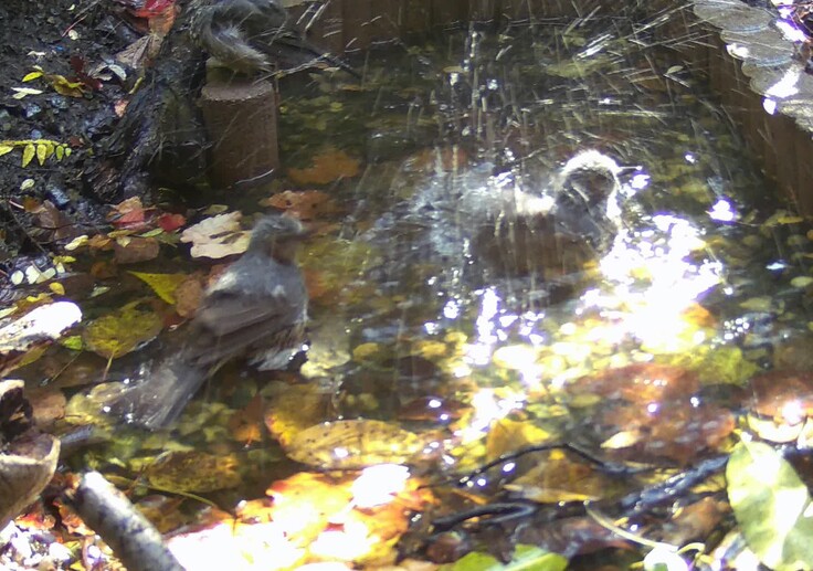 ヒヨドリは北海道から入ってきた個体がいるのか、こちらも利用頻度が増えています。繰り返し水場を訪れて豪快な水浴びを披露してくれました。