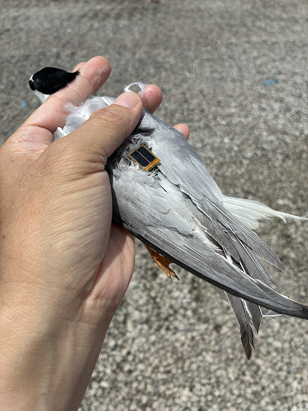 6月13日、大阪湾でコアジサシにGPSタグを装着する調査を実施しました。GPSタグはご寄付によって購入させていただいたものを装着いたしました。