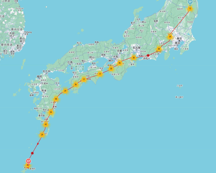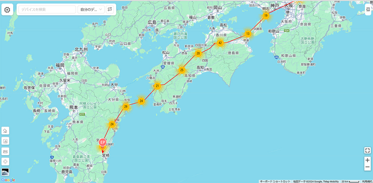 宇宿①と②も移動をしていますが、川上勢①②③は途中でくつろいでいます(苦笑)。宇宿③は今日はデータ受信がありませんでしたが、昨日はまだ川越市から動いていませんでした。