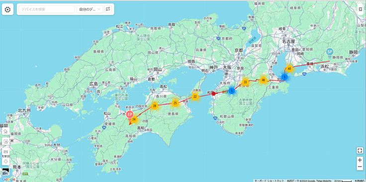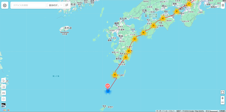 宇宿①が奄美大島に向けて飛び立ちました。もう奄美大島には着いていると思います。その先までいったかどうか。三鳥屋も川上②も動き出しました。淡路島にいた川上③も9時現在で30km弱は移動したので渡りを開始したのかと思います。天竜川手前で止まっていた宇宿③も天竜川を渡って5kmほど移動し始めました。明日のデータが楽しみです!少なくとも宇宿①の奄美到着の吉報がお知らせできると思います!