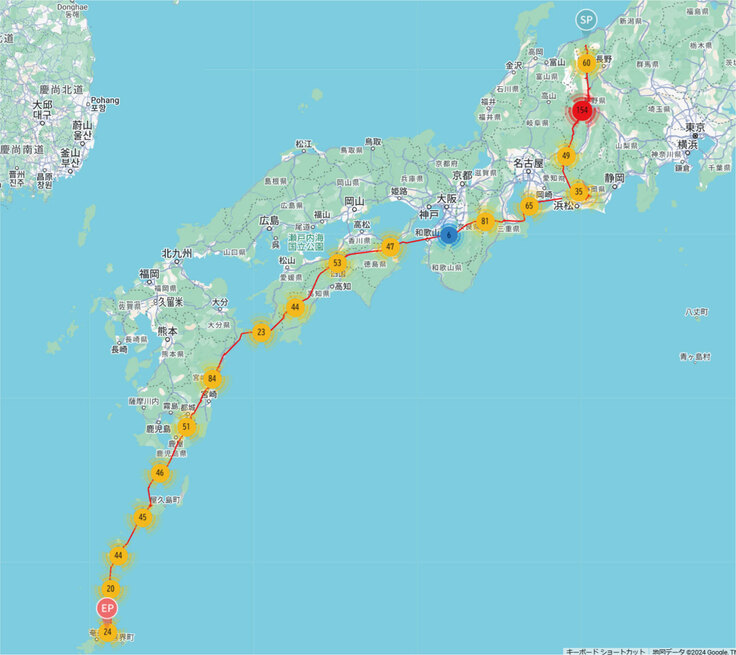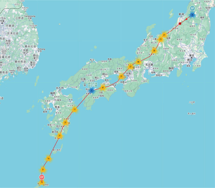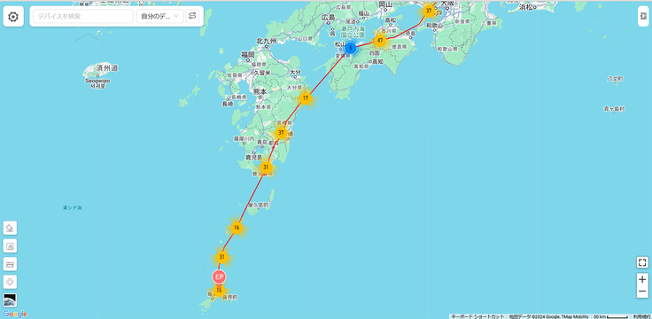 宇宿③は今日はデータが来なかったですが、10日に四国を渡ったと思いますので、こちらももうすぐかと思います。お楽しみに!!