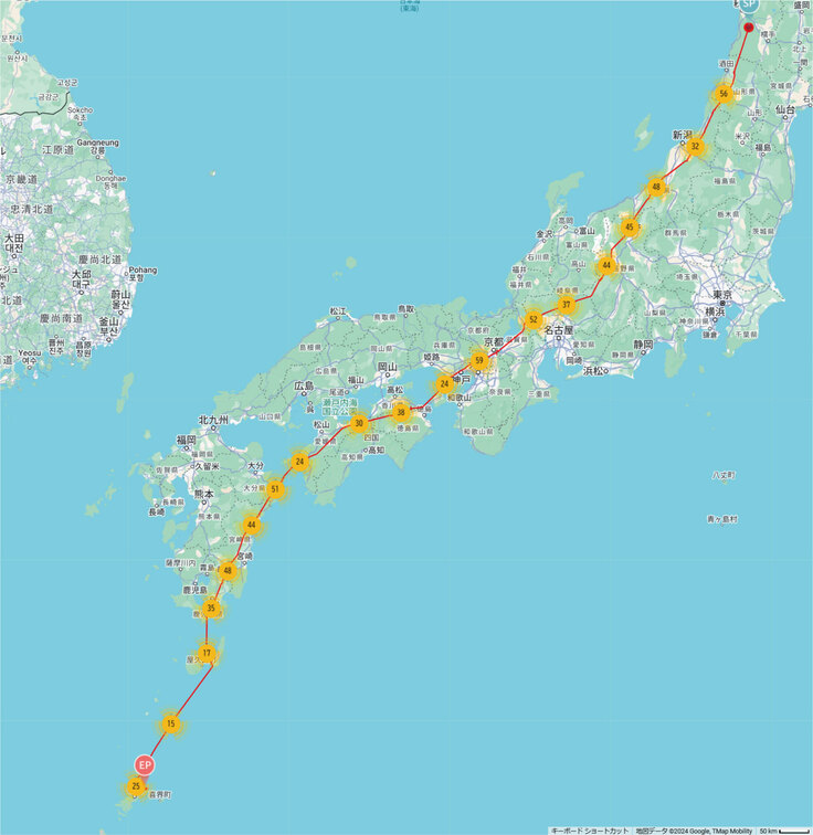 川上②も奄美大島に到着のデータが来ました!昨日のうちに到着していたようです。他の個体と同じく捕獲地にピンポイントで戻ってました。