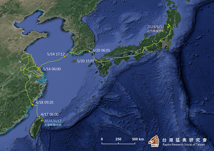 ちなみに、2008年から2011年にかけて台湾猛禽研究会が実施した追跡調査の結果は、こちらのウェブサイトの図に示されています。