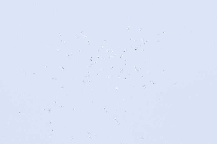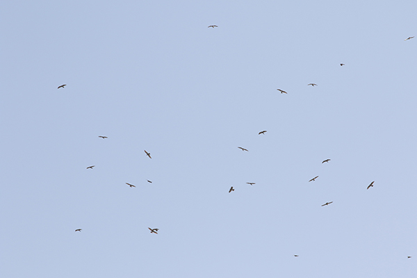 次世代に残していきたいサシバの情景として、タカ柱は外せないものだと思います。昼間の上昇気流を探し当てて次から次へと集まり、そして上昇気流に乗って高度をかせいだサシバは次の上昇気流のポイントに移動する。長旅で体力を損なわないよう、上昇気流をとらえては旋回上昇してを繰り返しながら目的地に向かいます。そのためルート上の上昇気流のポイントではタカ柱が繰り返しできるのです。