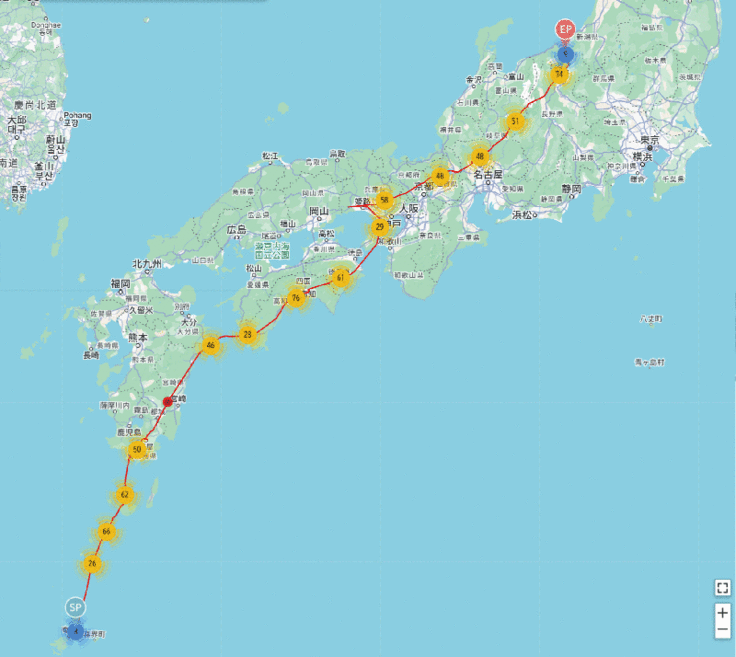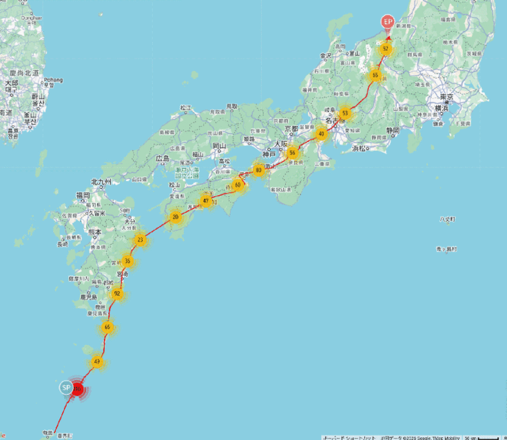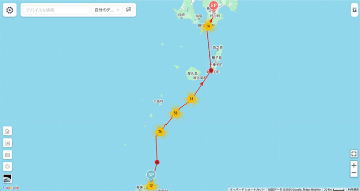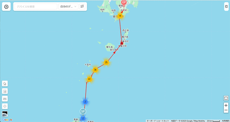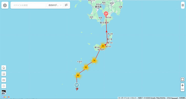 今日はまた新たな動きがありました。宇検村からの個体で動きが得られたのは湯湾だけでしたが、昨年の個体の中から宇宿②、③と川上③が新たに動き出しました。宇宿②と③は隣接地であり、コースも似ているので一緒に行動しているかもしれないですね。