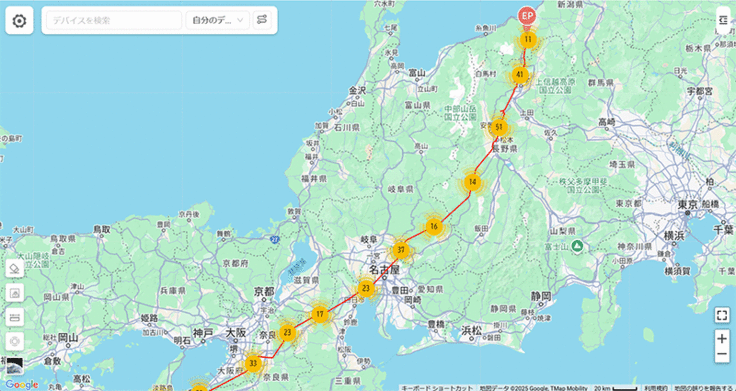 また、龍郷小の個体が途中でとまっていましたが、昨年と同じ繁殖地に一気に移動!遅れて繁殖地に到着です。昨年は10日間かけて4月1日到着でしたが、今年は14日かけて4月4日に到着。アルプス横断もありませんでした。天候の問題もあるかと思いますが、ずいぶん違うものだなという印象でした。