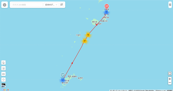 コテツからのデータが本日はありませんでしたが、ツムグは奄美大島を昨日のうちに離れたようです。頑張ってほしいですね。あとスイセイも地図上では越冬地をほとんど動いていないので割愛しますが、今日9時の点がいつもの場所から数百メートルずれており、さらには上空280mとなっていました。もう移動を開始しているのではと期待しています!