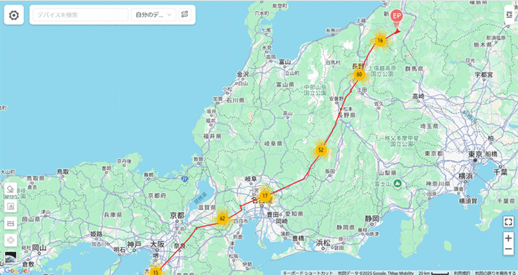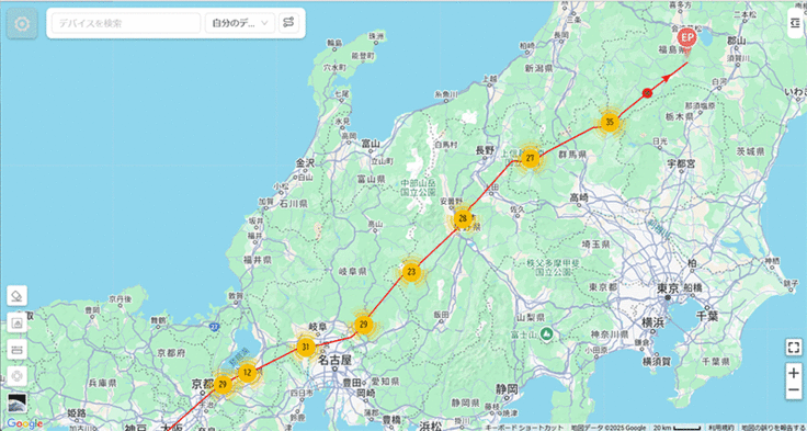 宇宿②と宇宿③は同じ日に旅立ちましたが、同時に昨年と同じ繁殖地に到着しました。それもかかった日数はどちらも4日間!昨年は最短で7日間でしたが、大きく記録更新です!宇宿③は昨年より無駄なく最短コースを渡っているように見えますね。
