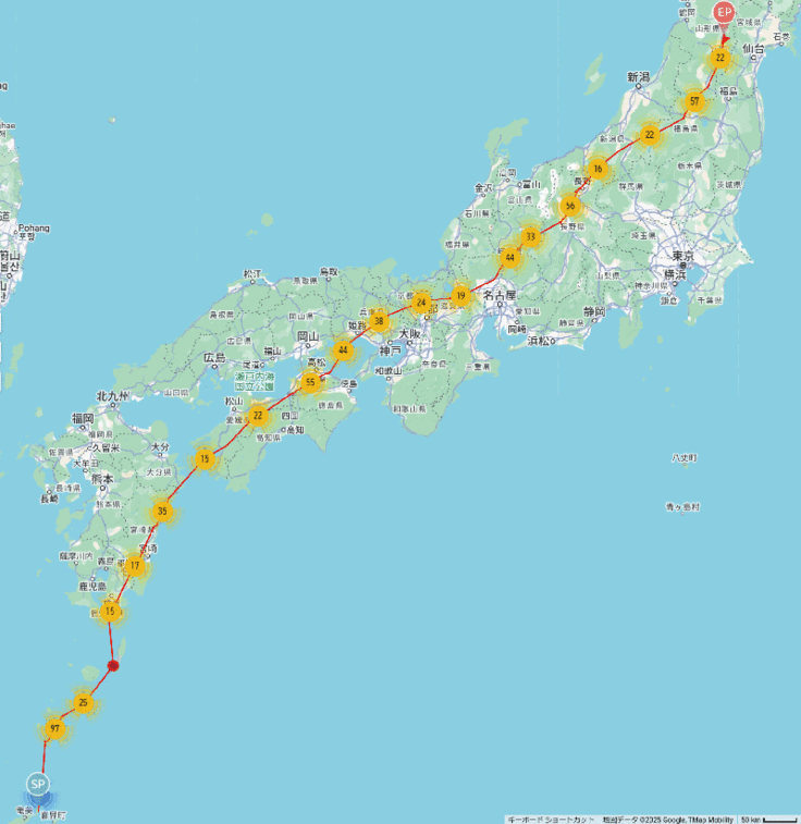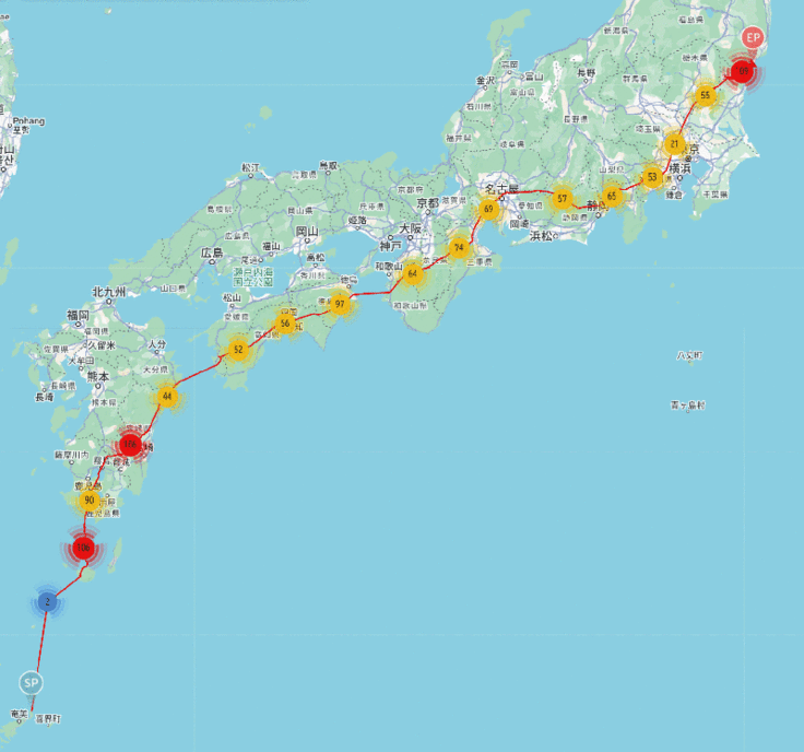 生勝(いけがち)①は奄美大島北部まで行かずに離島です。生勝②も進んでいますが、生勝③が四国から本州へ渡る前に躊躇している感じ。。。頑張ってほしいですね。