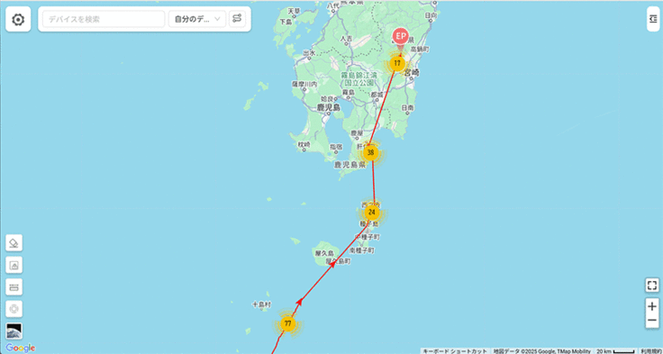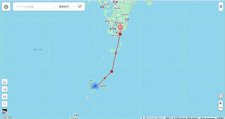 今日はスイセイと阿室(あむろ)①の移動が確認できました!これで今年装着した個体で奄美大島に残っているのは部連(ぶれん)①と名柄(ながら)の2個体となります。無事全個体が海を渡って繁殖地にたどり着いてほしいですね。コテツは受信はあったのですが、新しいデータは入っていませんでした。残念。。