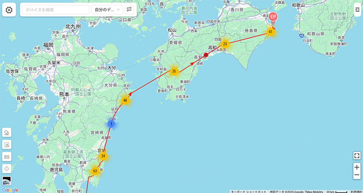 昨日動き出した部連①は屋久島で止まっています。天気が悪かったのでしょうか。