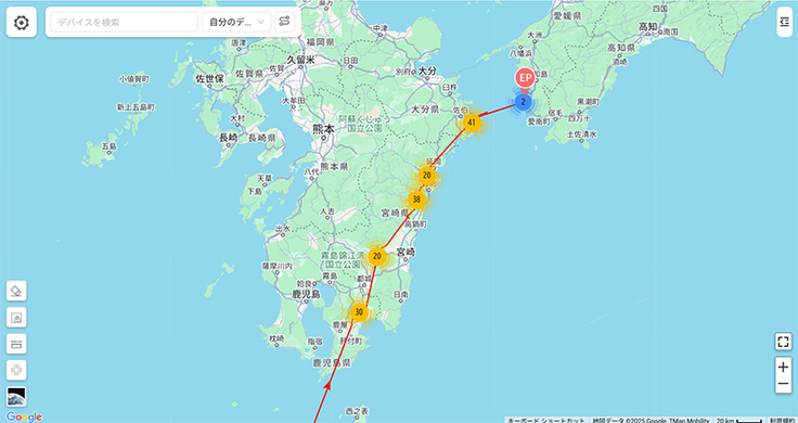 部連①は九州から四国に入りました。一度戻るそぶりを見せていましたが、無事四国上陸です。頑張って進んでほしいですね。