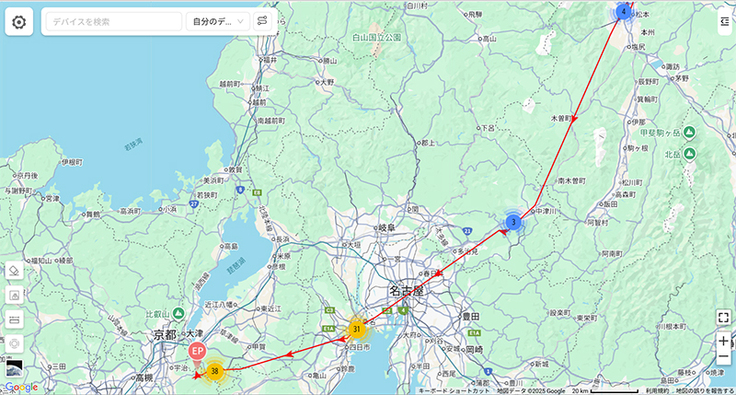 龍郷小からデータが来ました。やはり倉敷で長期滞在するようです。しかし倉敷の最新データは9月22日。昨年と違うのはその手前で少し長めの滞在、つまり中継地として利用した場所がもう1か所あるようです。昨年のデータと比べて改めて情報共有したいと思います。
