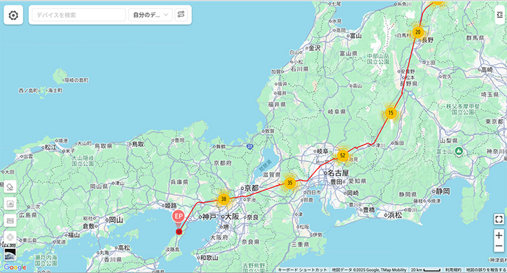 川上③が淡路島です。昨年はここで長期滞在しています。また滞在しそうですね。中継地到着のようです。