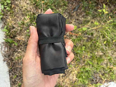 中には2リットルのペットボトルが2本余裕で入ります。お買い物にぜひ携帯ください。折りたたんで丸めることもできます。