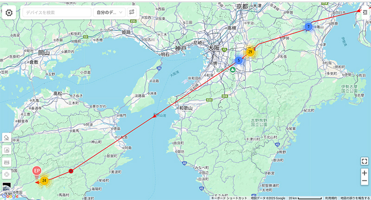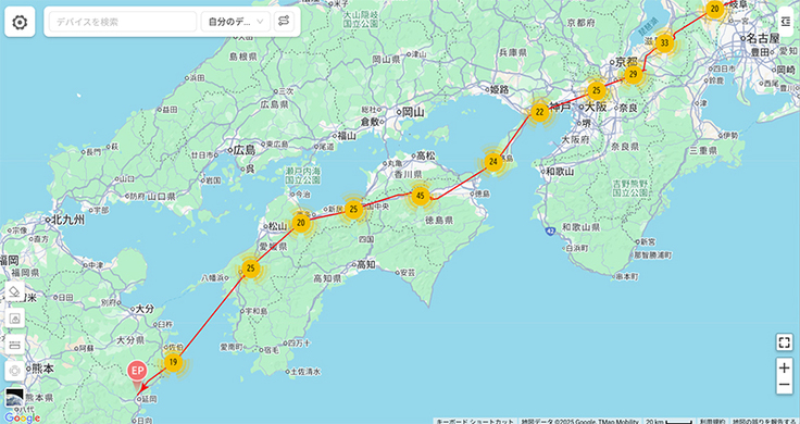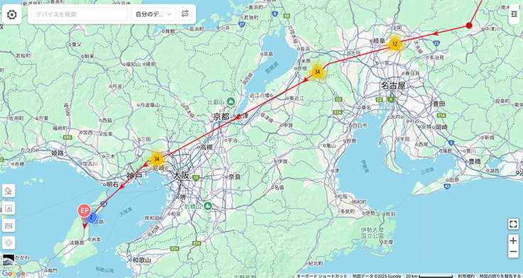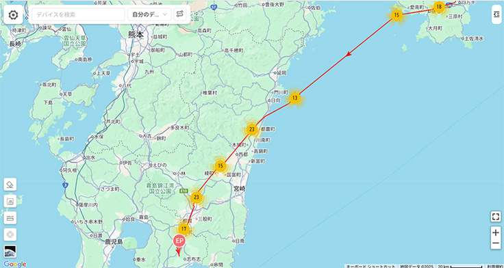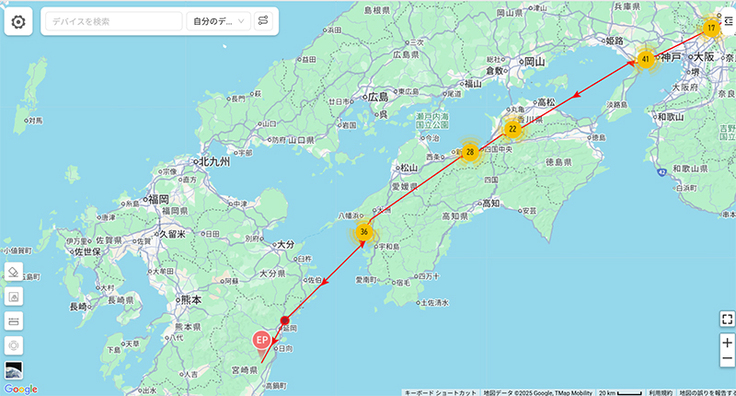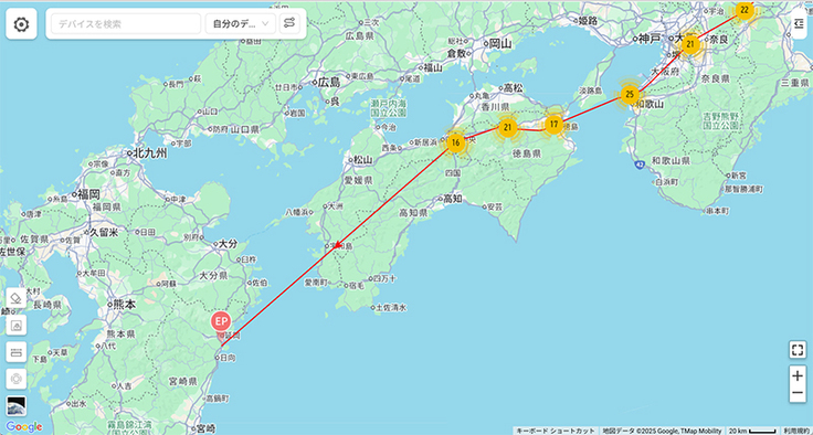 名柄が四国に入りました。数日データが来ていませんでしたが、いつの間にか進んでいたようです。